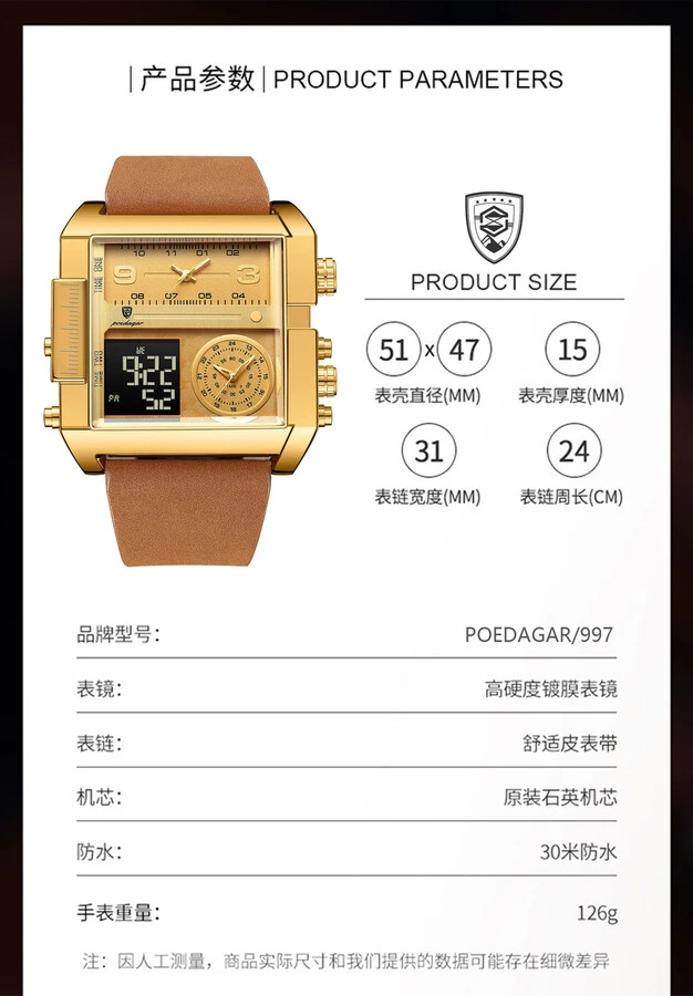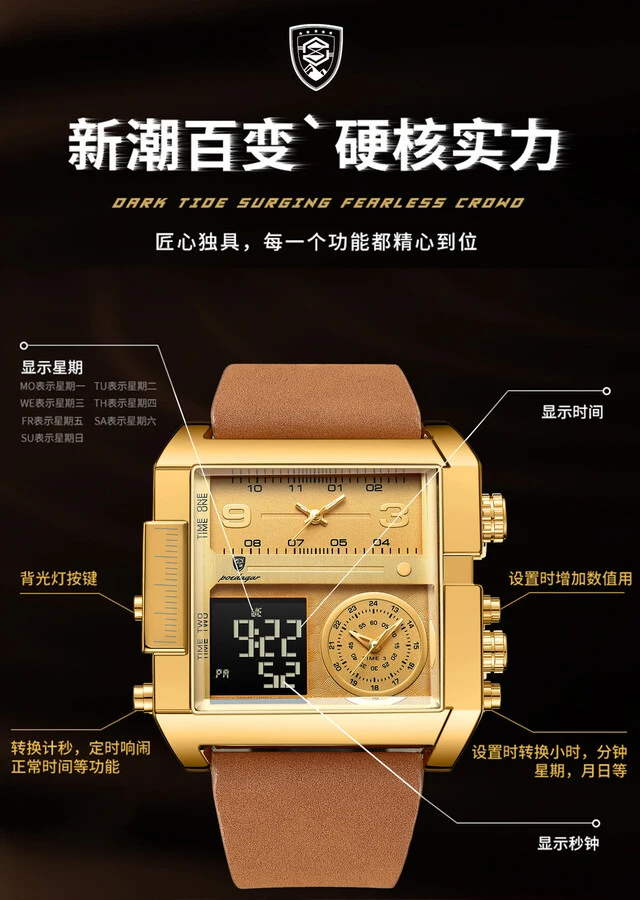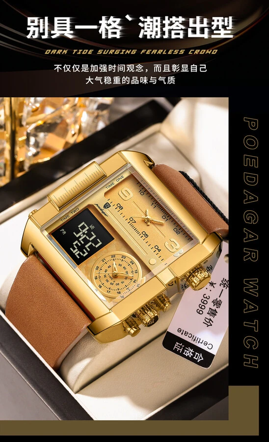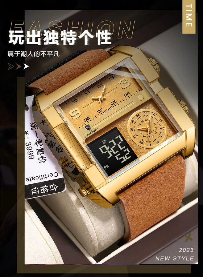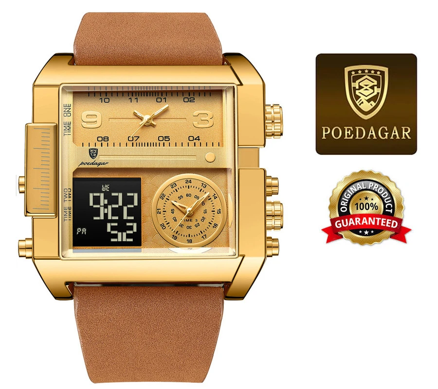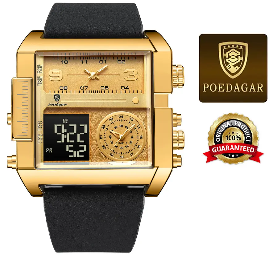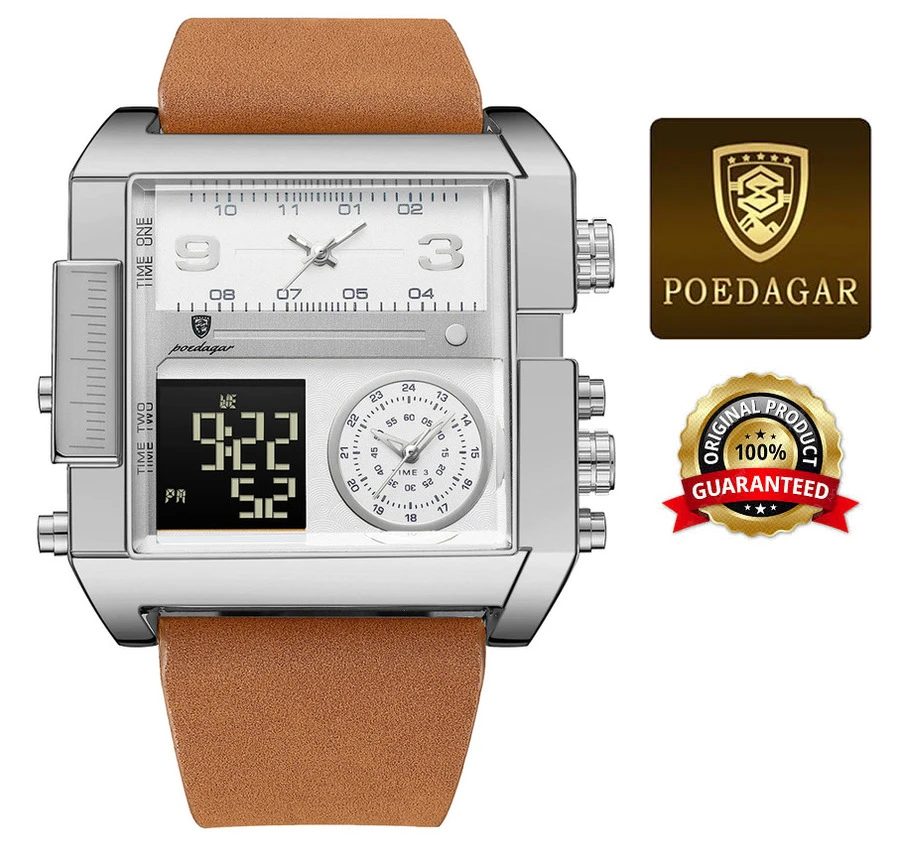 | Новые супер-роскошные мужские многофункциональные часы от бренда POEDAGAR с электронным и кварцевым механизмом, цифровым дисплеем, таймером, будильником, шикарным стилем для повседневного ношения: 4 вида |