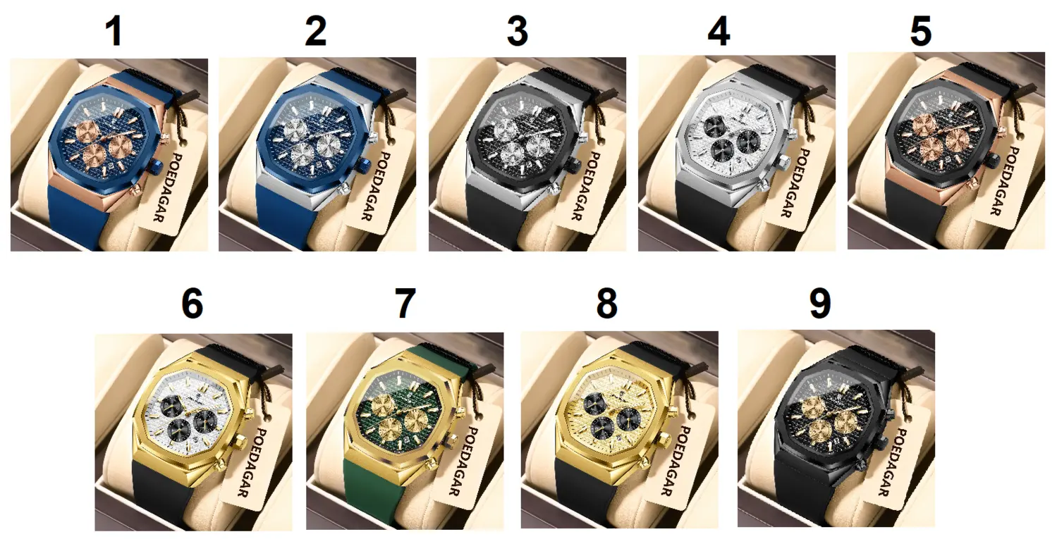 | Мужские часы премиум-класса от бренда POEDAGAR, многофункциональный шестистрелочный календарь, большой циферблат, деловые, модные: 9 видов |