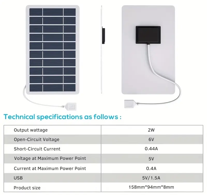 Солнечная панель 2 Вт с USB-зарядным устройством для телефона, водонепроницаемая, для пеших прогулок и кемпинга, портативная солнечная зарядка, 5 В, мобильный источник питания.