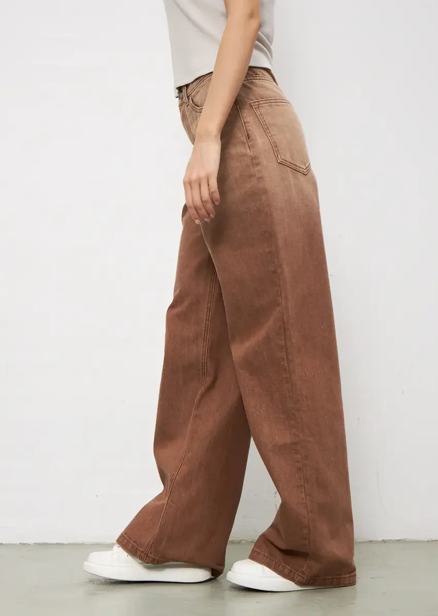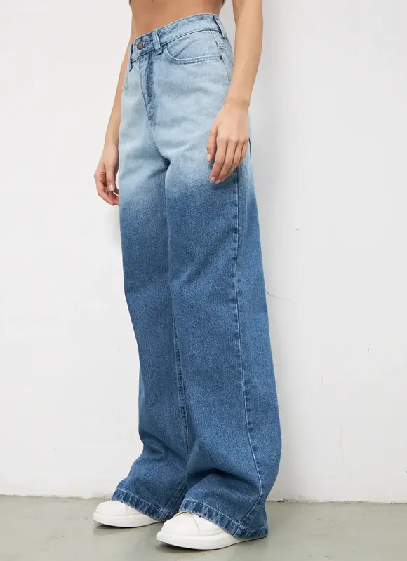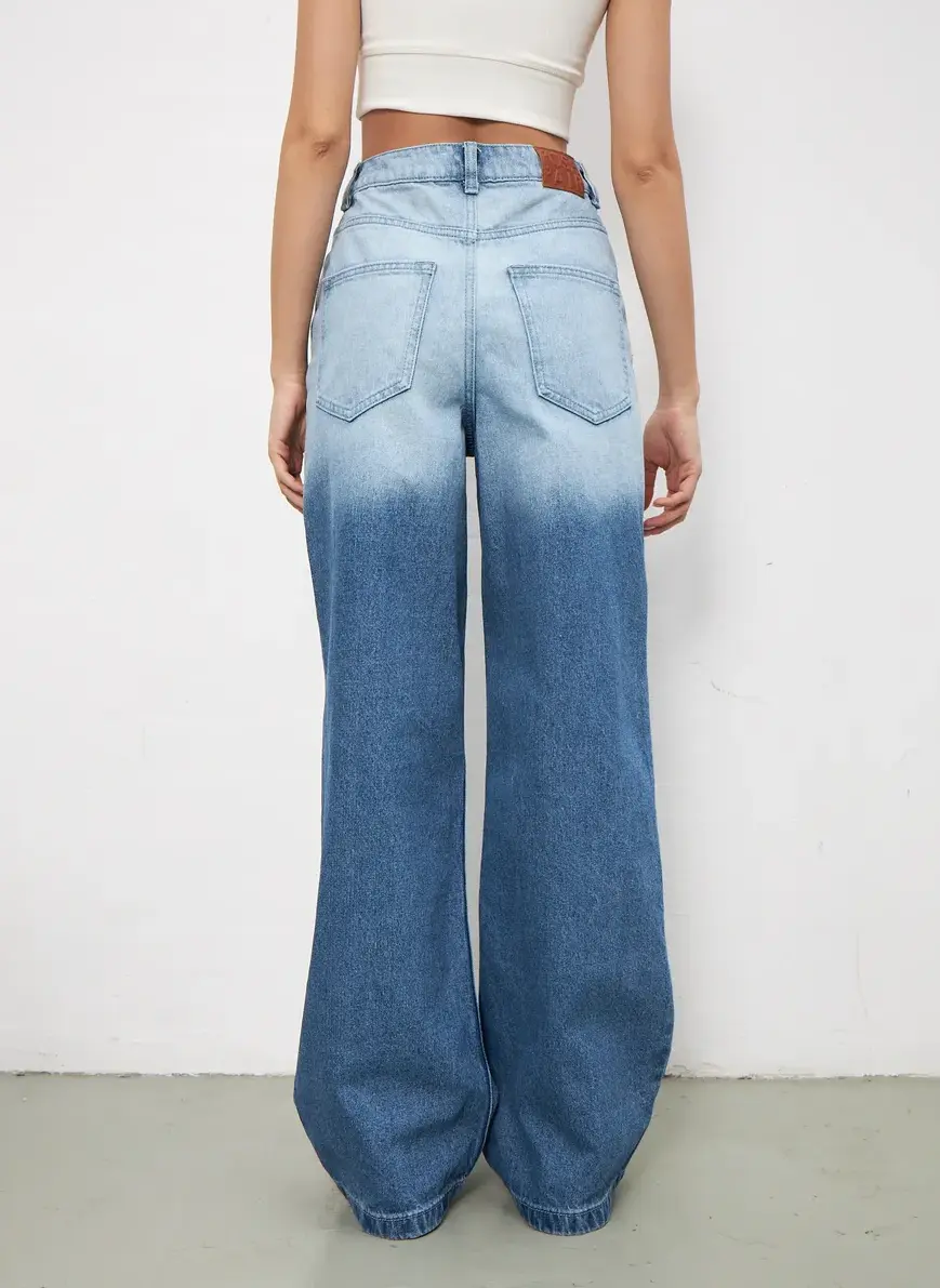 Широкие джинсы - клеш от бедра, выполненные из стопроцентного хлопкового денима, станут удачным приобретением для гардероба молодой девушки или взрослой женщины. Стильная модель свободного кроя с завышенной посадкой и расширением от линии бедра обладает длиной в пол, что создает элегантный силуэт и визуально вытягивает фигуру. Объемные штанины - шаровары в стиле палаццо обеспечивают свободу движений, а популярный фасон делает образ по-настоящему интересным и необычно выразительным.