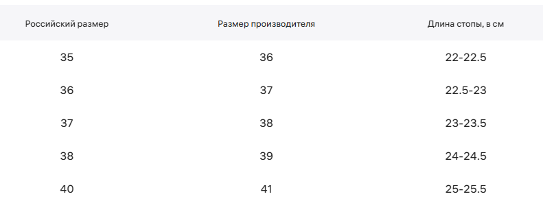 Таблица размеров производителя - кроссовки