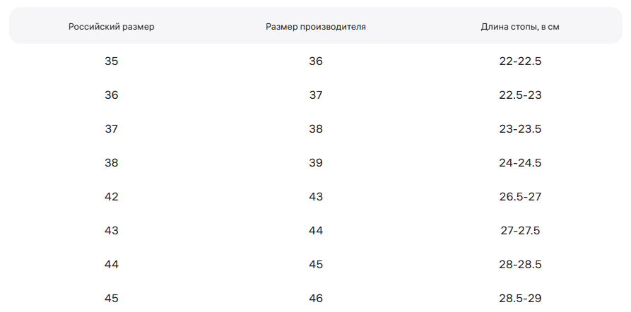 Доступные размеры: 35 36 37 38 40 41 42 43 44 45