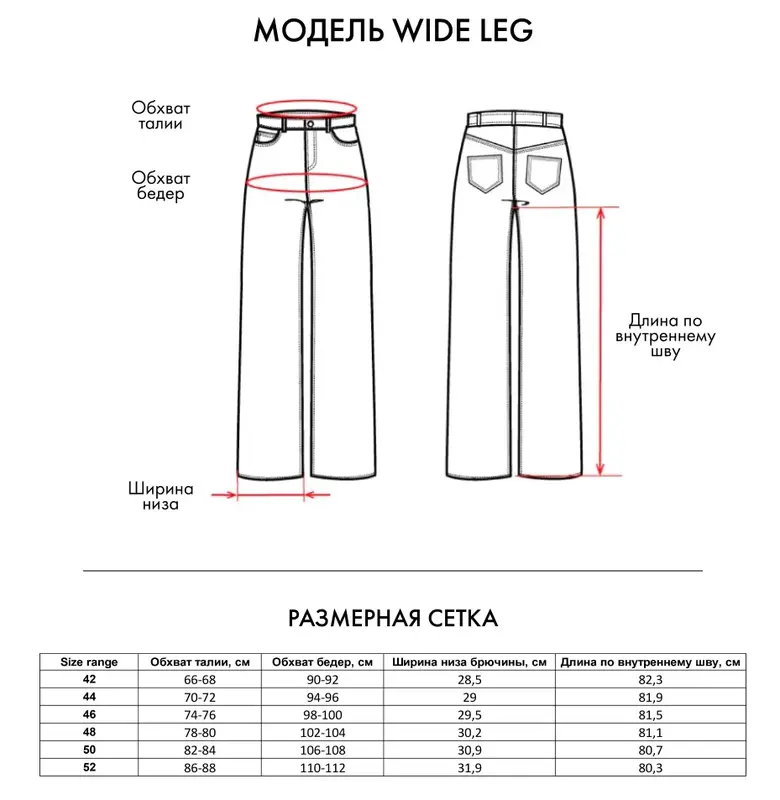 Таблица размеров производителя - брюки