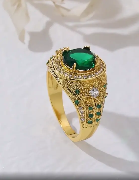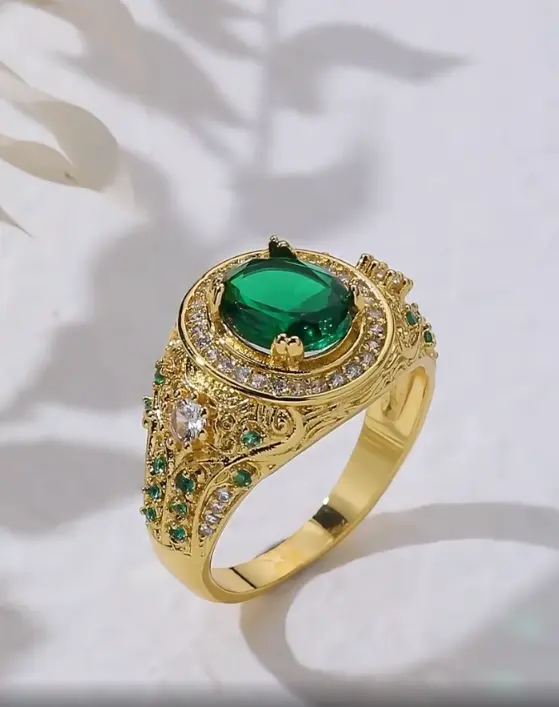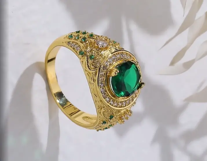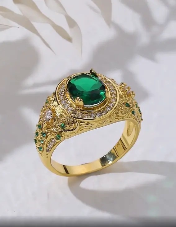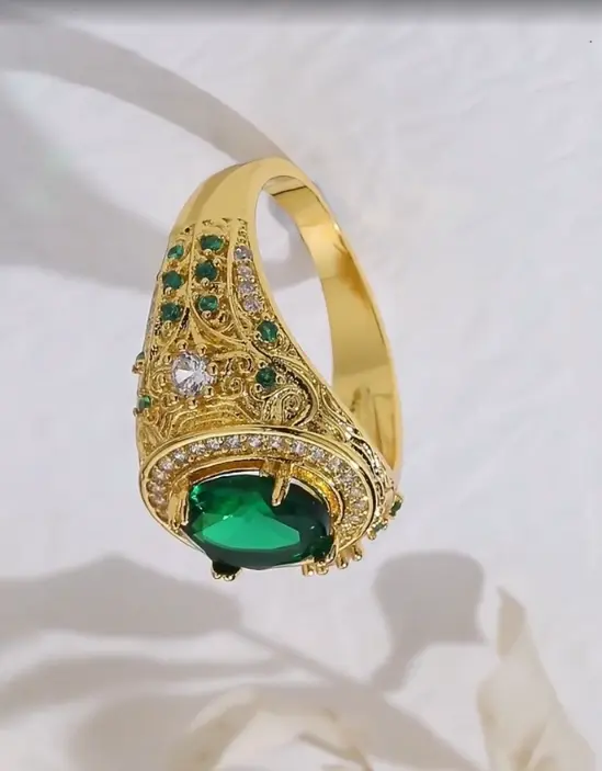 Преимущества: Сочетание бюджетной медной основы и качественного золотого напыления делает кольцо долговечным при бережном ношении.
