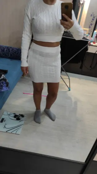| Женский осенне-весенний укороченный свитер с юбкой бренда VEZFAA, вязаный комплект. 4 цвета |