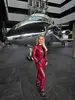 | Женская модная кожаная куртка с кожаными брюками, комплект. Цвет: темный красный |