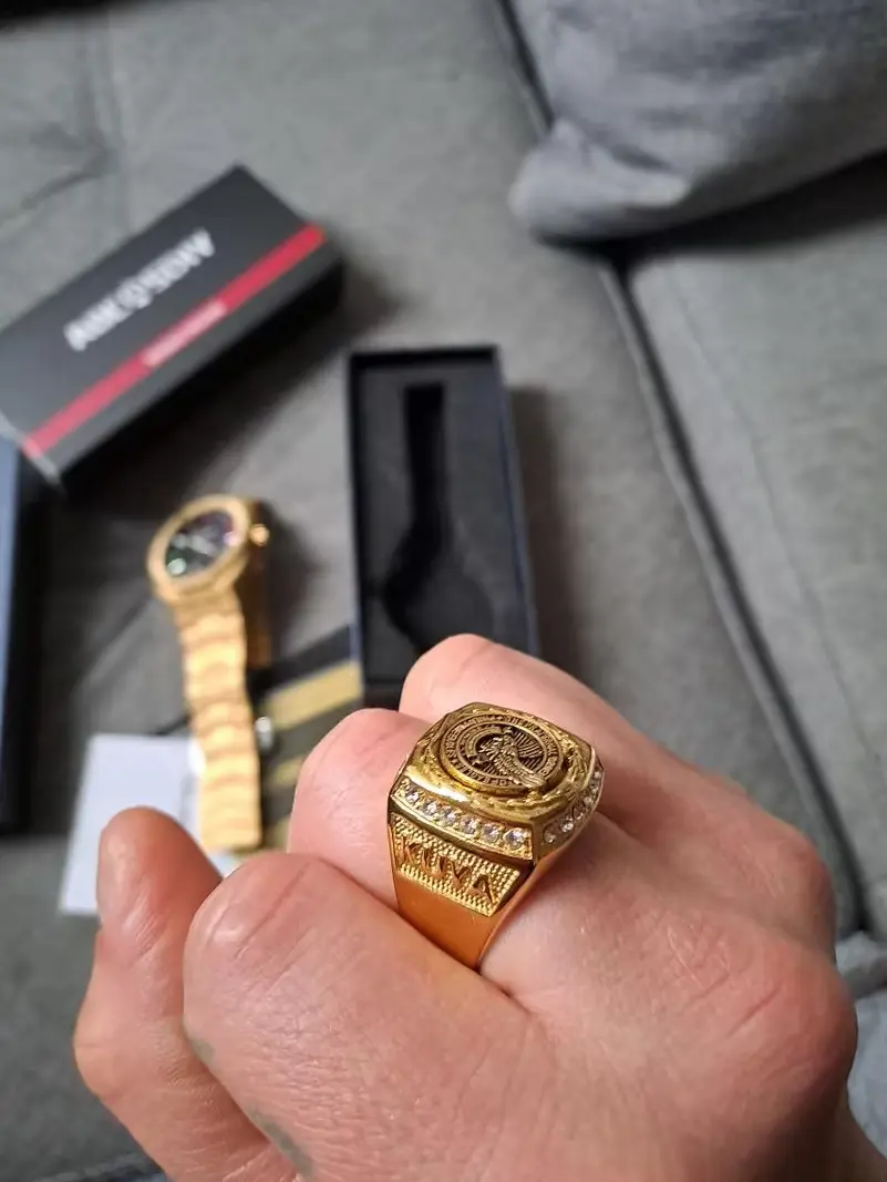 Перстень шикарный, неотличим от золота.