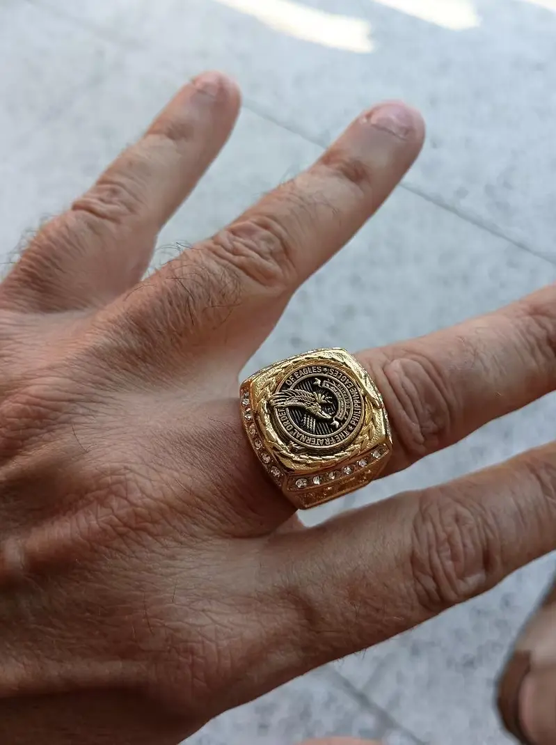 Это превосходное кольцо с эмблемой эскадрильи "Филиппинские орлы" из золотого титана с ограненными циркониями. Невероятно красивый и качественный дизайн по очень выгодной цене.